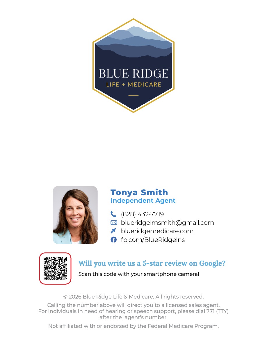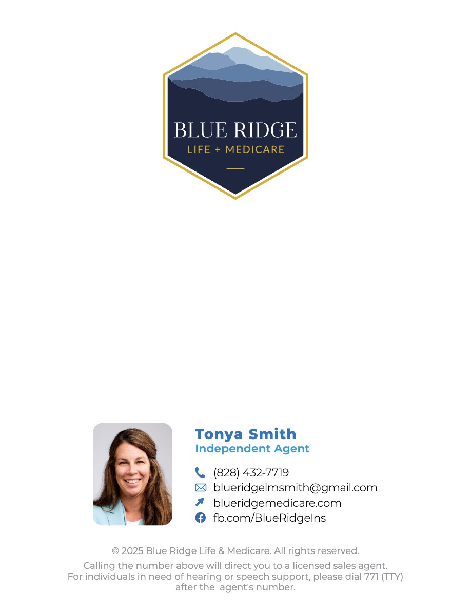 Blue Ridge Life + Medicare is an independent authorized agency licensed to sell and promote products from Blue Cross and Blue Shield of North Carolina (Blue Cross NC). The content contained in this site is maintained by Blue Ridge Life + Medicare. Blue Cross and Blue Shield of North Carolina is an independent licensee of the Blue Cross and Blue Shield Association.